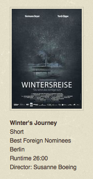 – Best Foreign Nominee Short Film Winter’s Jouney/ Wintersreise